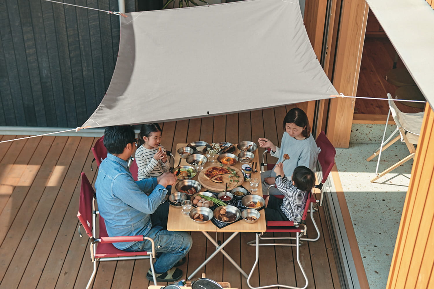 全国の提携工務店内にスノーピーク特約店を展開。庭に簡単に設営できるテント、土間サロンにぴったりのアウトドアチェア、ウッドデッキで淹れたてを楽しむコーヒードリッパー…普段の生活に取り入れる、“野遊び”のあるライフスタイルを提案しています。