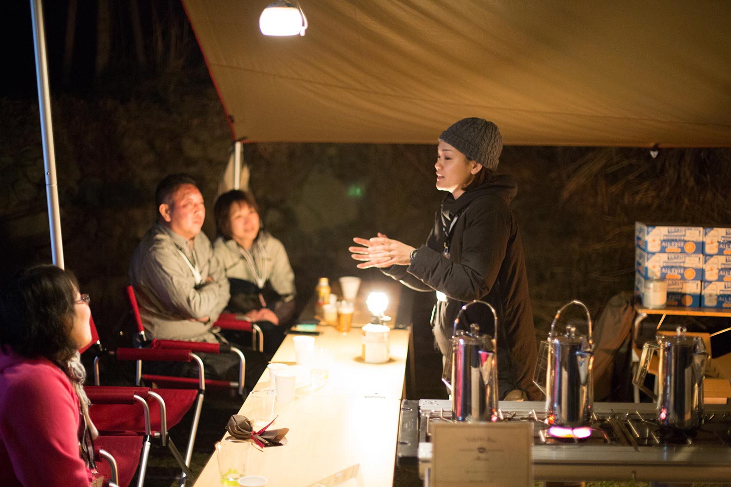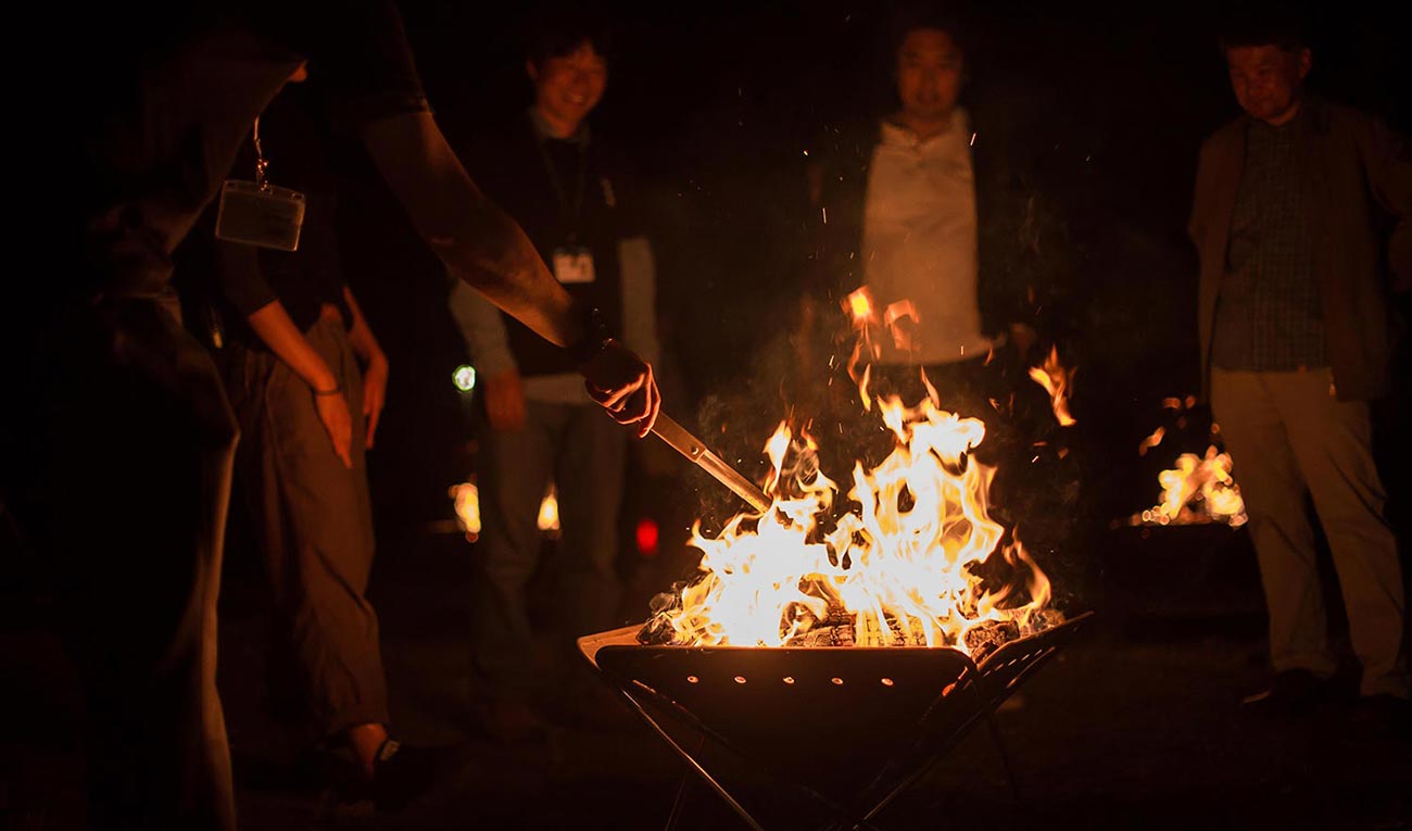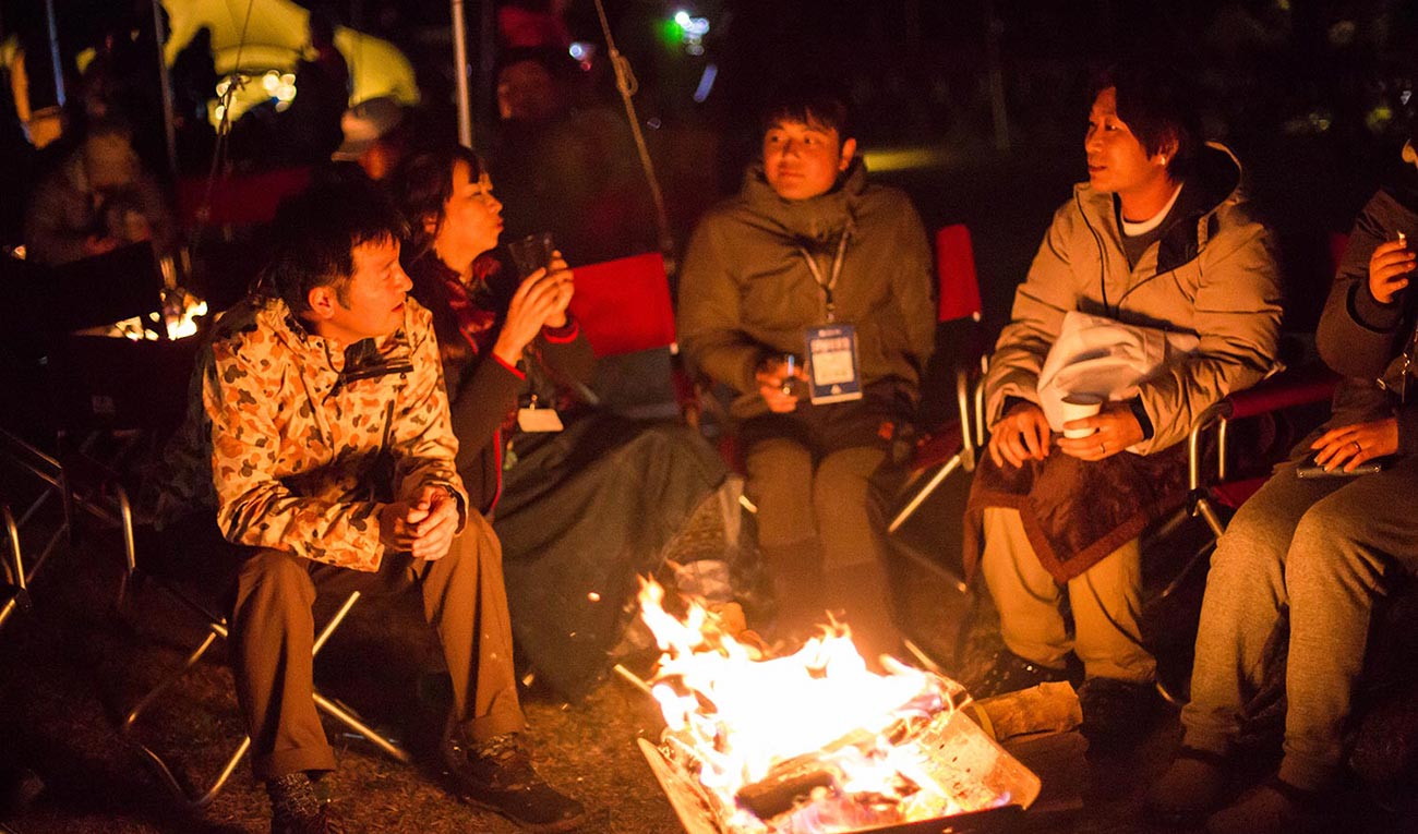 ユーザーの皆様とスタッフが同じ焚火を囲み、