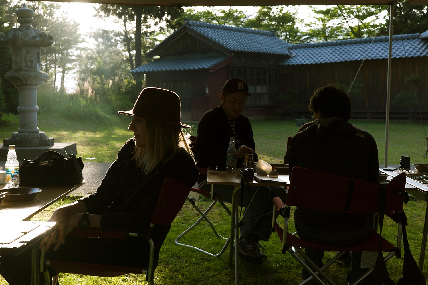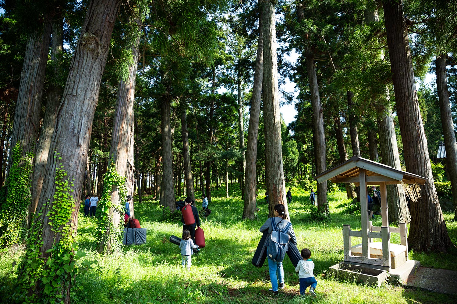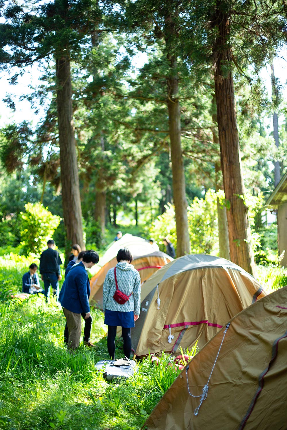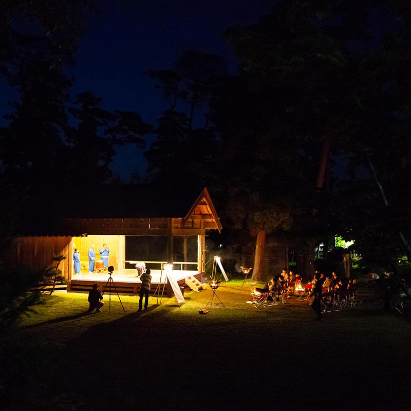 テントを立てるのは、加茂湖を見下ろす高台に建つ椎崎諏訪神社。佐渡文化の象徴でもある能舞台のかたわらが滞在の拠点となります。佐渡島の文化、歴史と、ここに住まう人々の暮らしに思いをはせながら、24時間を過ごします。