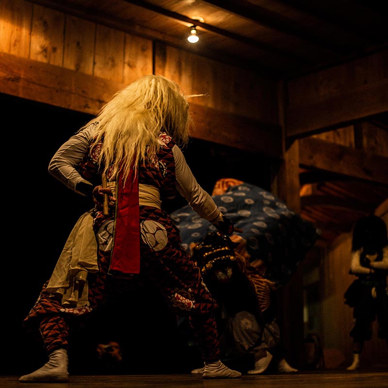 鬼太鼓は佐渡に古くから伝わる芸能で、悪魔を払い豊年を祈る神事です。能舞台を使用し、ご参加のお客様にだけ特別に実施をして頂きます。