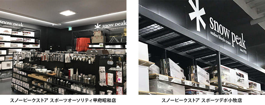 「スノーピークストア スポーツオーソリティ甲府昭和店」は山梨県初の出店、「スノーピークストア スポーツデポ小牧店」は愛知県内8店舗目となります。全てのアイテムがラインナップされ、スノーピークスタッフが在籍し、高品質で機能的なアイテムの詳しい説明はもちろんのこと、設営講習会やイベントの開催等も充実させ、「自然指向のライフスタイル」を提案して参ります。