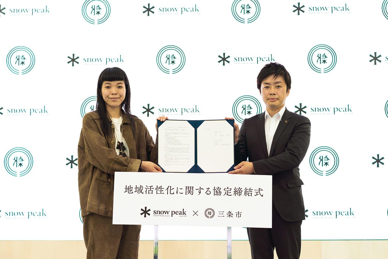 株式会社スノーピーク(代表取締役社長:山井梨沙、本社:新潟県三条市、証券コード:7816)は、新潟県三条市(市長:滝沢 亮氏)との間で、以下のとおり地域活性化に向けた包括連携協定を締結しましたのでお知らせします。今回の連携はスノーピークが取り組んでいる地方創生の一環であり、地方自治体等との包括連携協定締結は21例目となります。