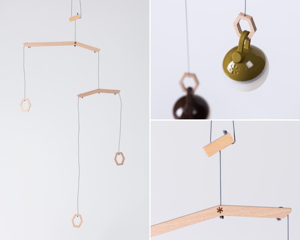 たねほおずき専用のモビールです。風に吹かれると、優しくゆらゆらと動きます。自在の位置を調整することで高さを調整することが出来ます。