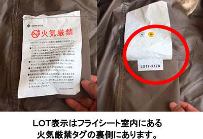 ※下記画像参照。(2016年11月以降の出荷商品でフライシート裏面のLOT表示タグに「K16J / K16K / K16L / K17A / K17B / K17C (※2)」と記載されている製品のインナーテント。)