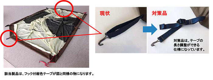 該当商品をお持ちのユーザー様に対しては、良品のインナーテントと交換対応をさせていただきたく存じます。ご理解・ご協力を賜りますよう何卒よろしくお願い申し上げます。