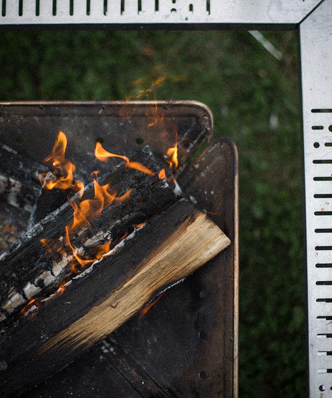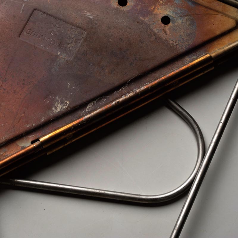 焚火台の三角形のパネルには、厚さ1.5mmのステンレス材を採用。強靭なスペックで炎に耐えます。使い込むほどに風合いが増し、使い手とともに思い出を刻みながら育ってくれる一生の相棒にふさわしいギアです。