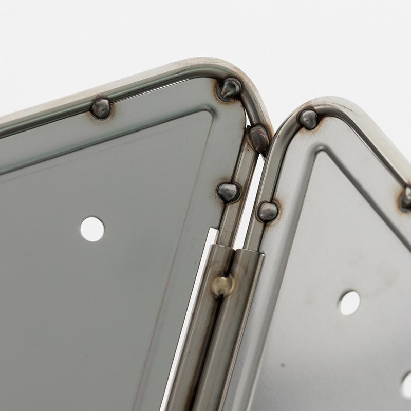 三角形パネルを4本のステンレスパイプを溶接して囲み、衝撃や熱をしっかり受け止めます。