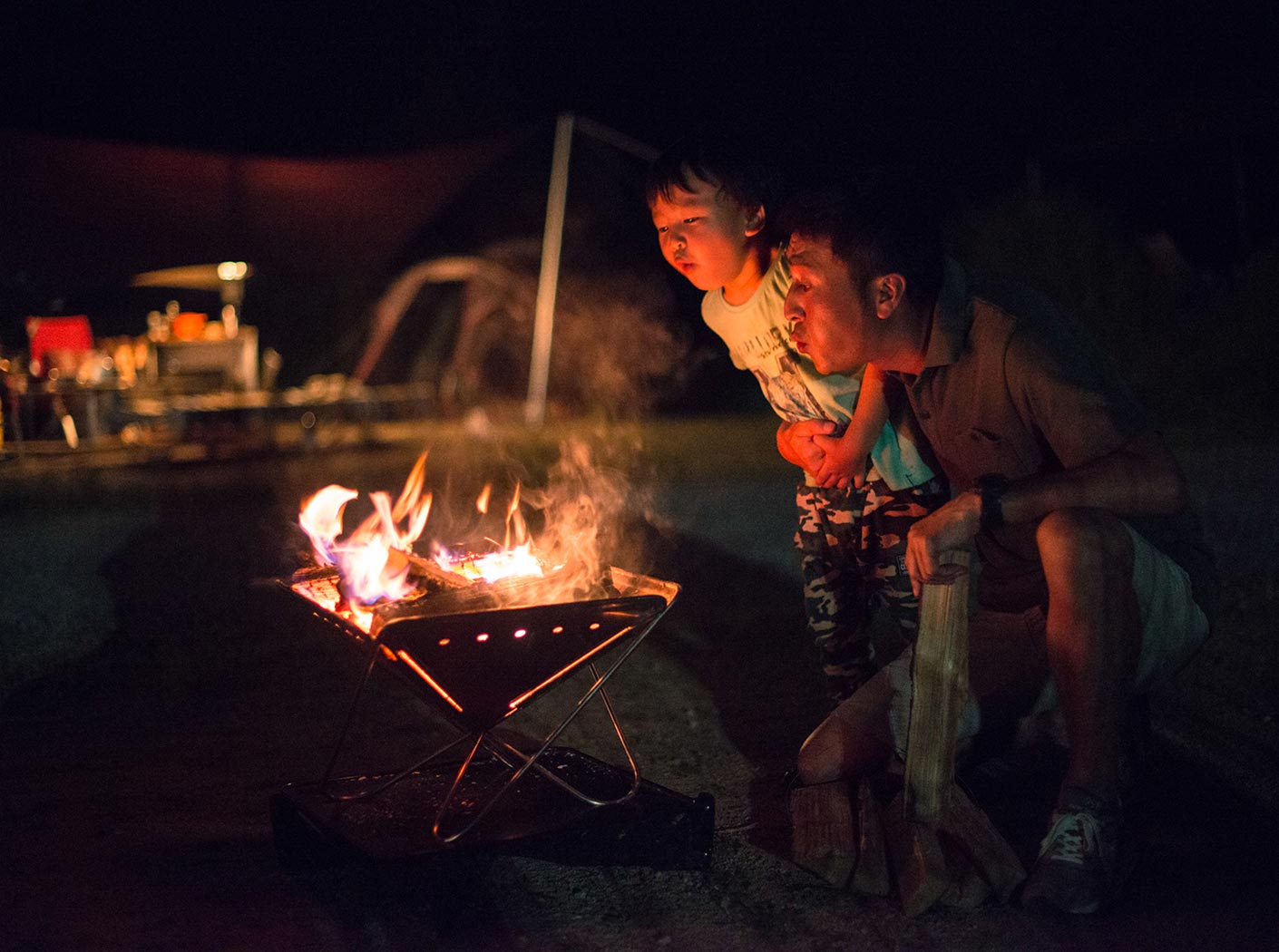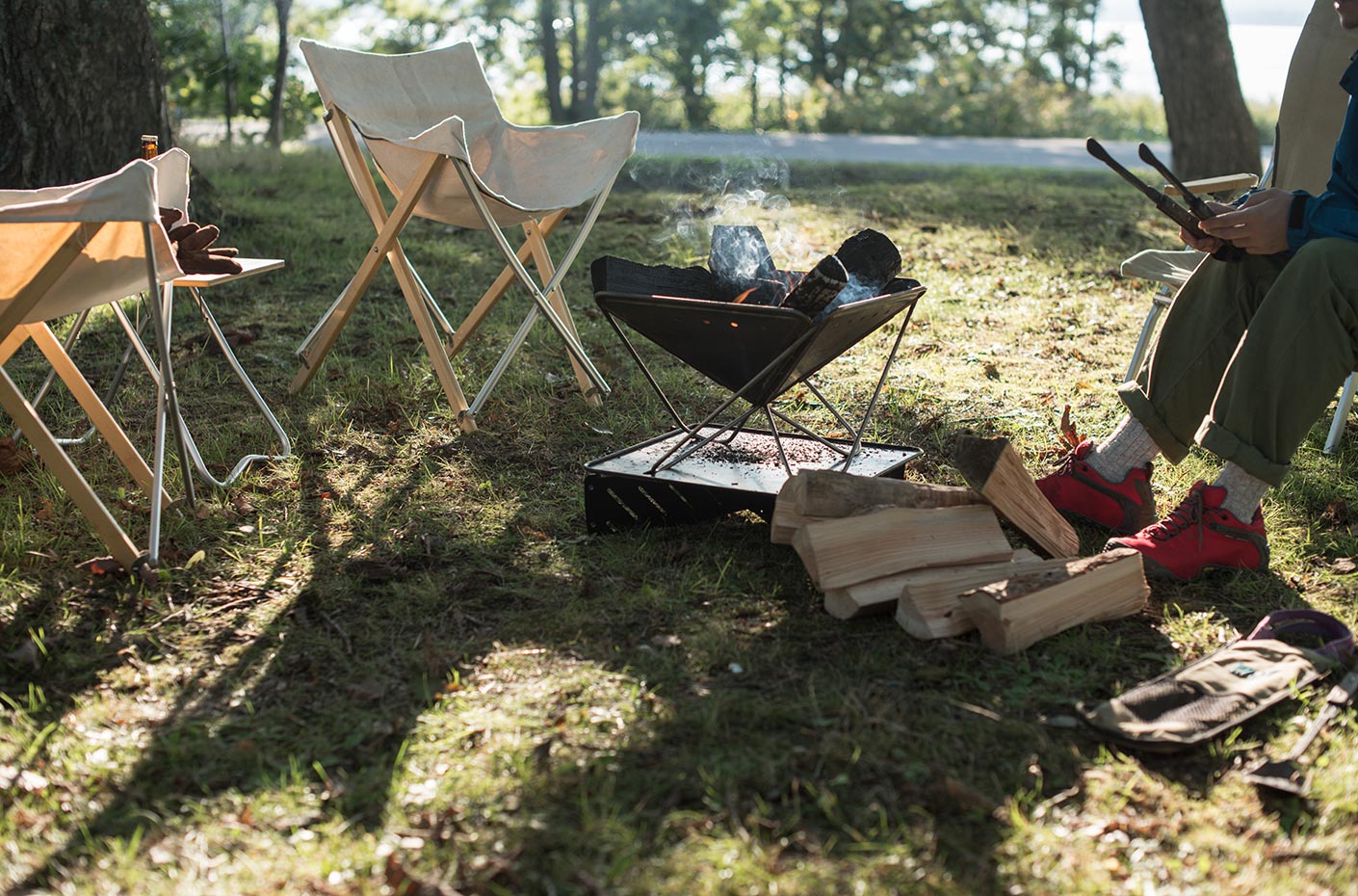 当時、地面むき出しのキャンプ場が多く存在し、焚火は直火で楽しむことが常識とされていた。石を使った効率の良いかまどの作り方や、土の上での着火方法などが教本にも書かれていた時代。しかしその後訪れたオートキャンプブームにより、芝が整えられた直火禁止のキャンプ場が数多く新設された。ルールを守らず直火で焚火を楽しむキャンパーが後を絶たず、私たちは撮影などで多くのキャンプ場を訪れる度に、黒く焼け残った無残な焚火の跡を見ては嫌悪感を覚えた。「自然にダメージを与えずに焚火を楽しみたい」という明確なコンセプトの下、地表を守りながら焚火を楽しむためのギアの開発がはじまった。