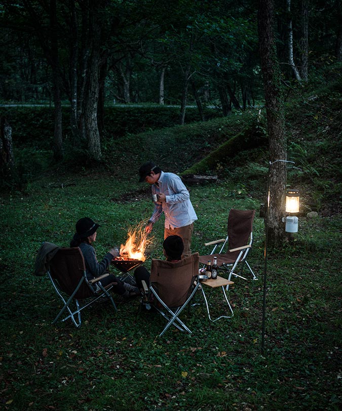 S・M・Lの3サイズの焚火台を、スタイル、人数、シーンで使い分ける。
