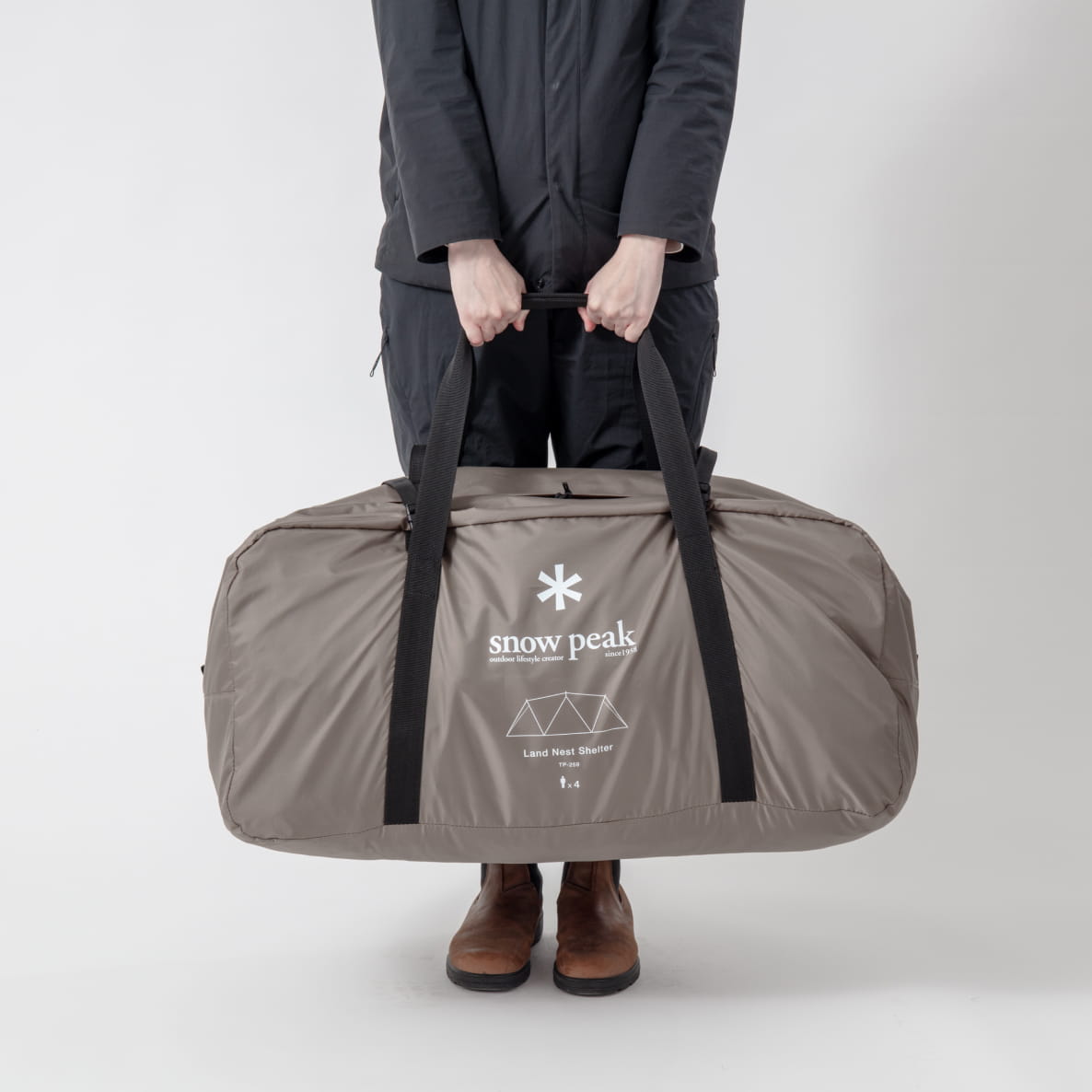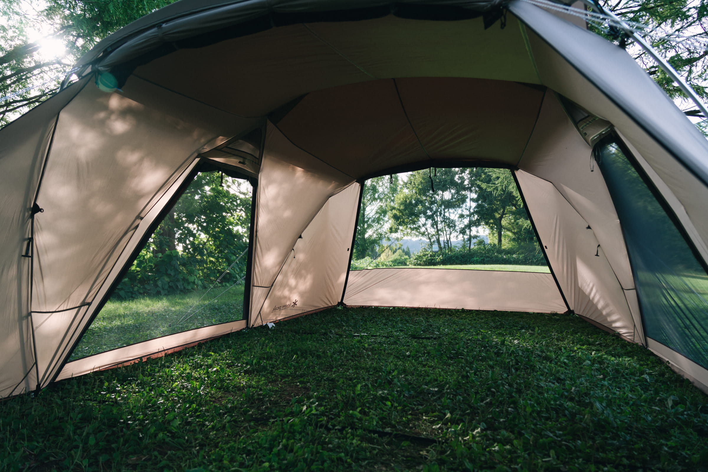 シンプルなフレーム構成と前後左右対称の構造により、初心者でも迷わず簡単に設営が可能。メインフレームも容易に立ち上げられ、ストレスなく設営を完了できます。