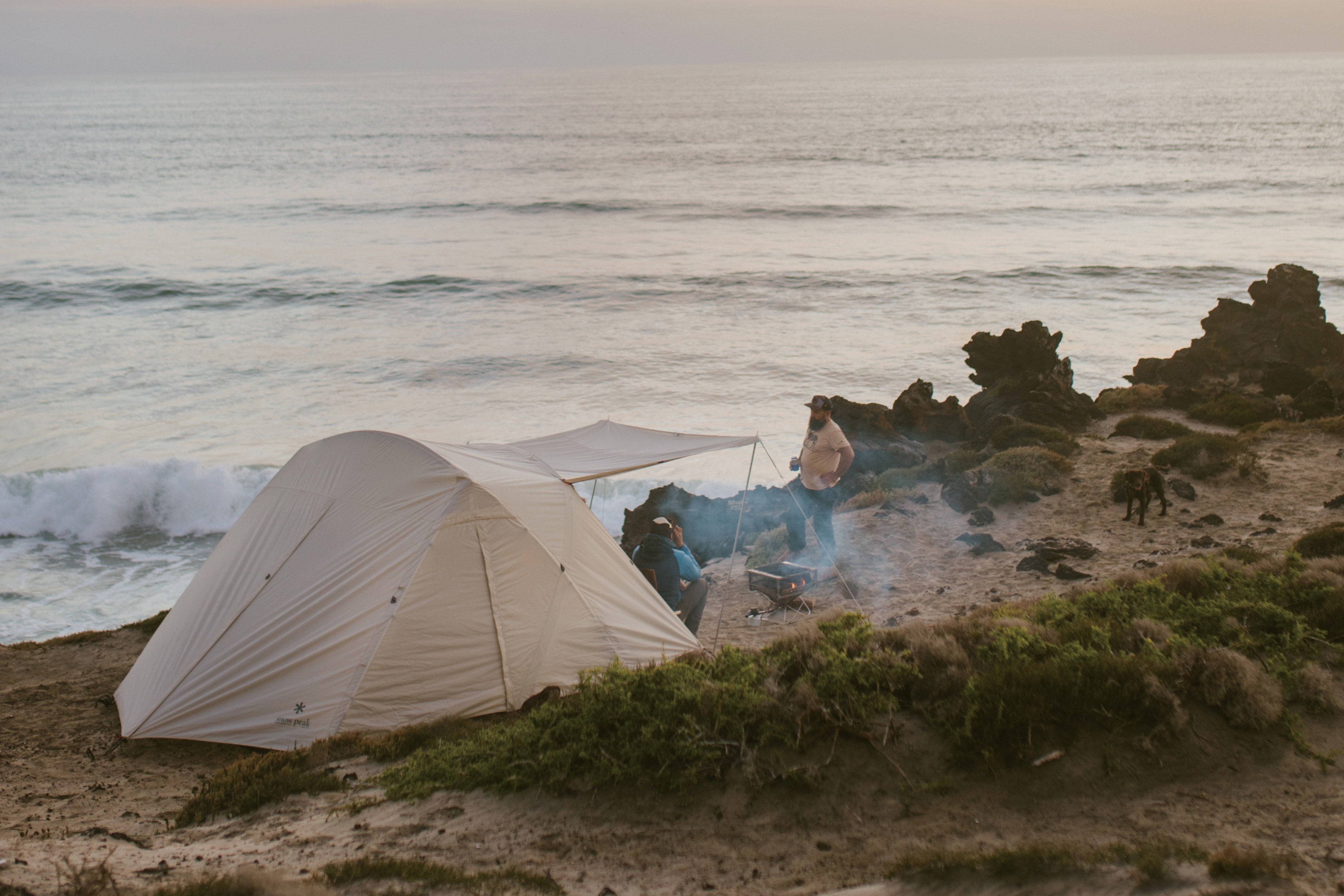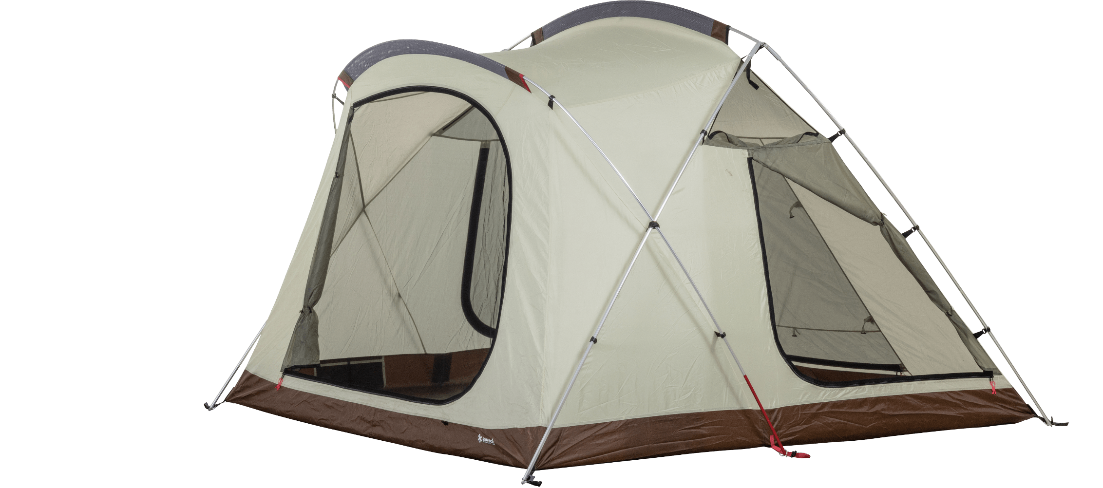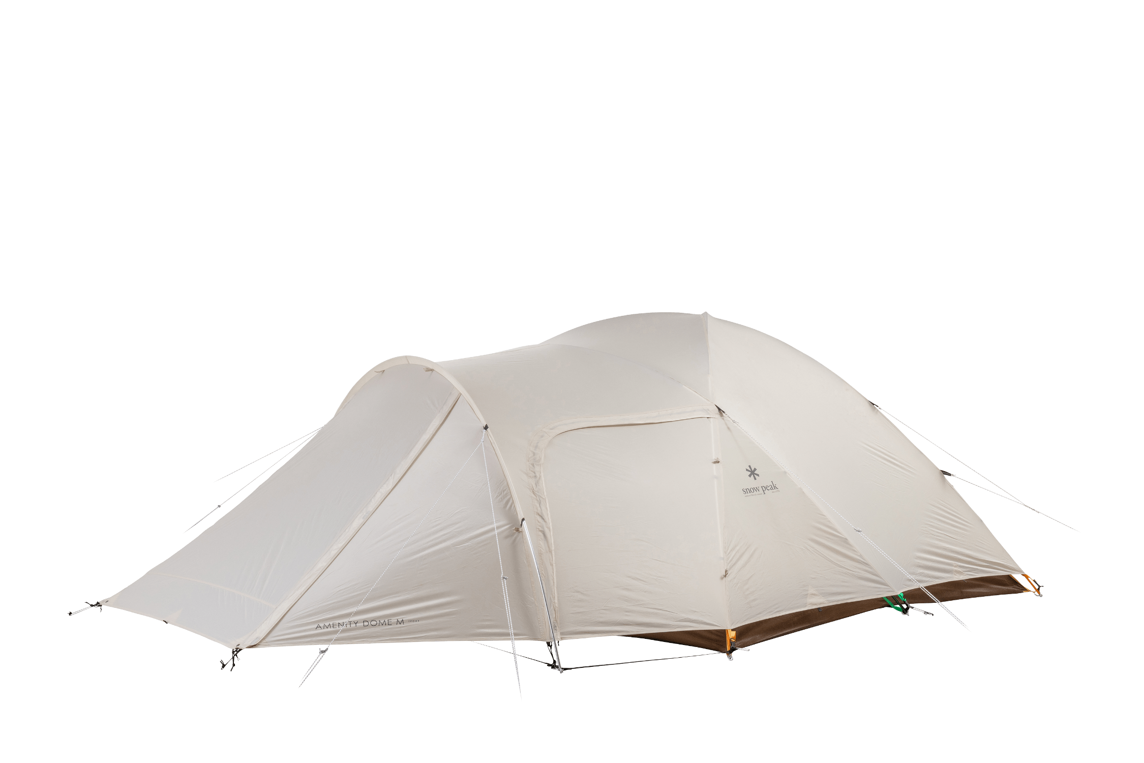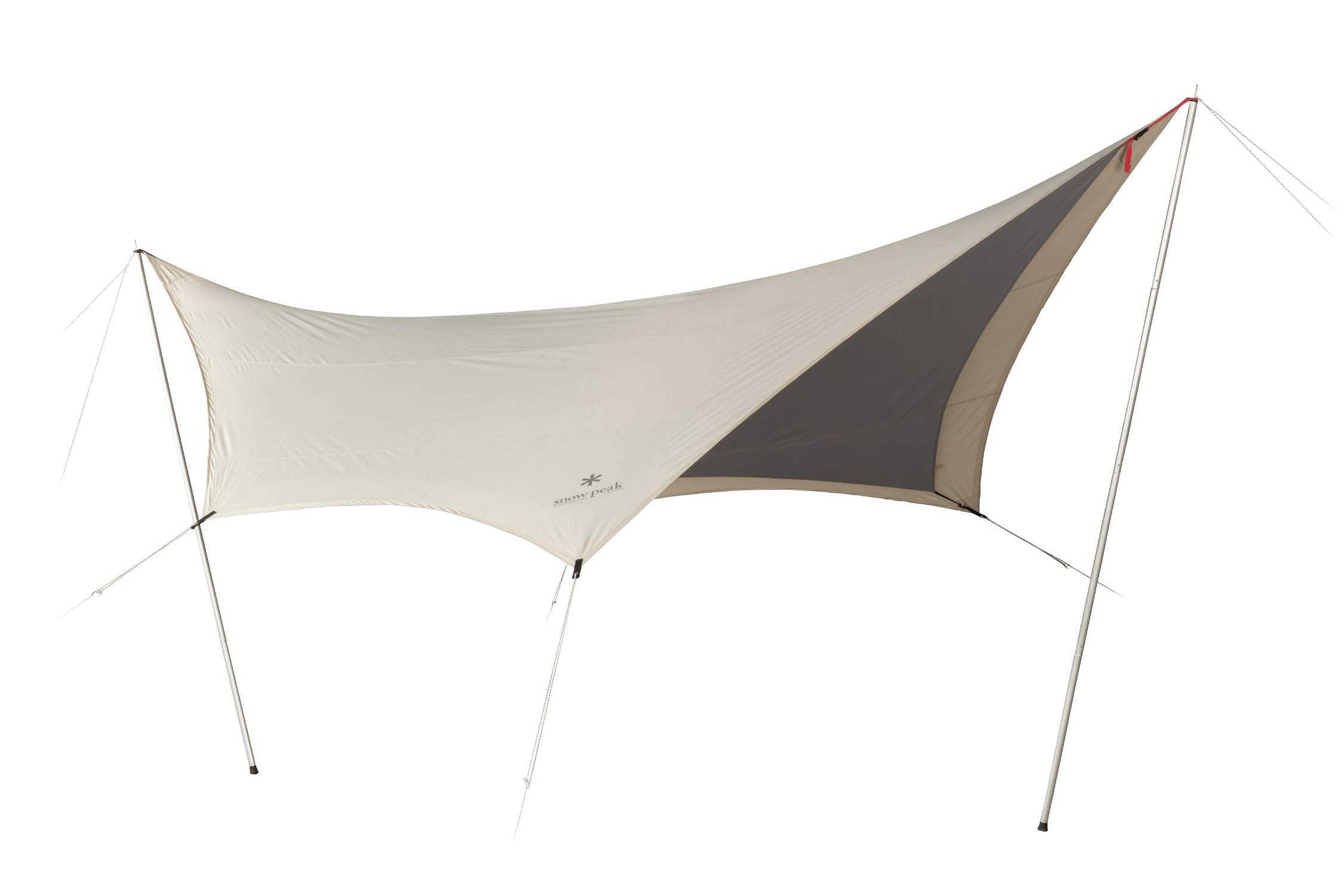 2~4 人での使用を想定して生み出された新たな2ルームシェルター「トゥーガ」。その開発に着手するきっかけとなったのは、「軽量化」と「少人数で快適に使える、ちょうどいい広さ」を求めるユーザーの声でした。まずは前後のフレーム構造を見直し、前方にはバイザーフレームを用いることでフレームの全体量を減らし、軽量化を実現。さらに両サイドのフレームの立ち上がりの角度や、前後のフレームの高さを調整して、快適な居住性を追求し、室内空間の有効面積の広さを最大化させています。また天井の高さやメッシュパネル、スカートは、スノーピークで不動の人気を誇る大型の2ルームシェルター「ランドロック」を踏襲。スカートがシェルター全体に付いているので、冬は外気の侵入を軽減して暖かく過ごすことができます。生地は比較的軽く、十分な強度を備えている75デニールのポリエステルタフタを採用。夏の暑さ対策として遮光ピグメントPU加工を施し、生地を通す光を軽減させることで、体感温度を低くします。インナールームは吊り下げ式で、「キャンピングマット2.5w」を最大4枚まで収容可能。スノーピークが求める快適性、そして強度にこだわりながら、細かなブラッシュアップを繰り返し、新たなシェルターが誕生しました。春夏秋冬、季節を問わず、デュオキャンプや夫婦2人と子ども1~2人でのファミリーキャンプを楽しまれたい方にオススメです。