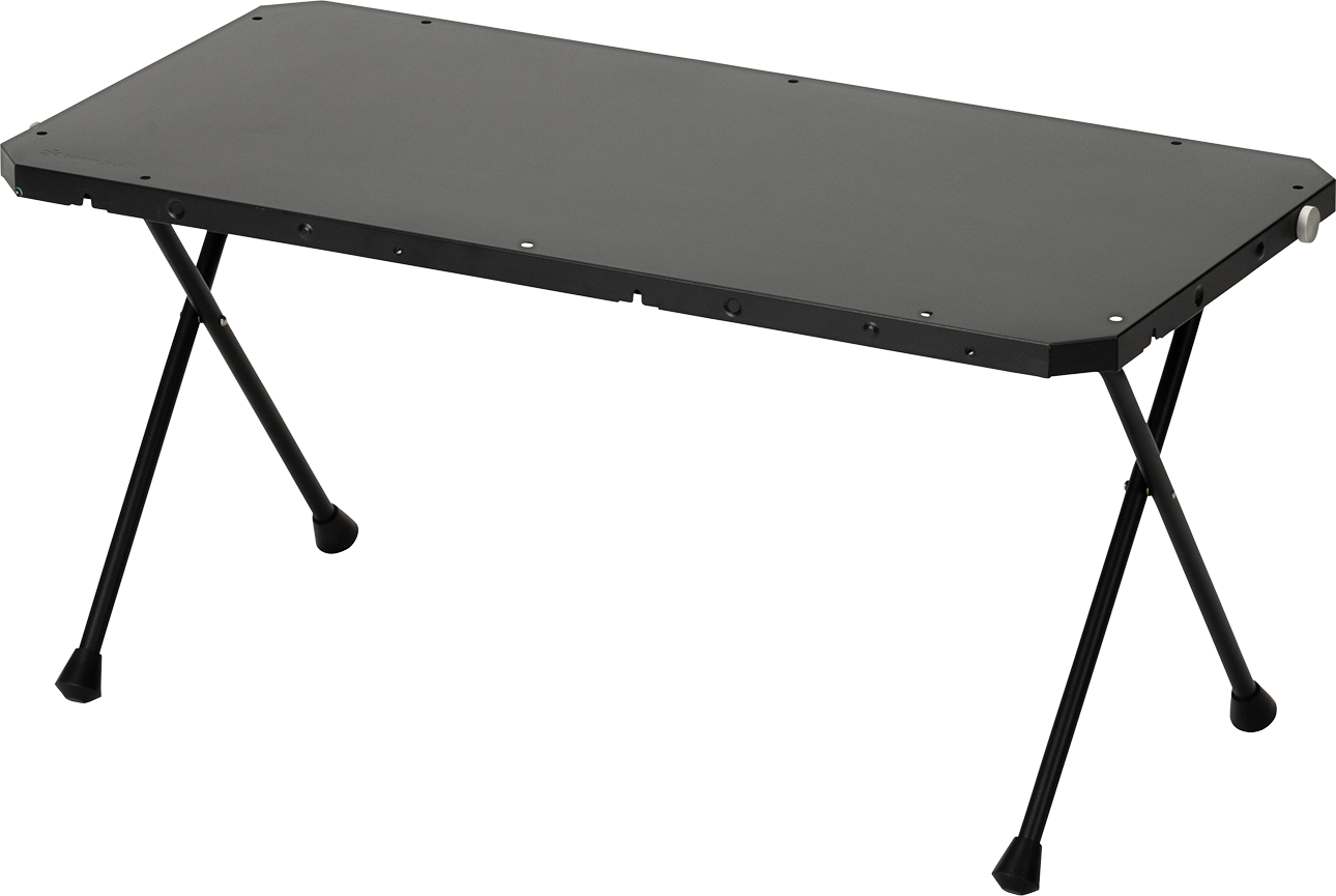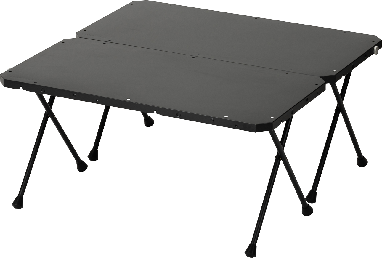 コネクションテーブル同士やジカロテーブル、マルチファンクションテーブルとの連結が可能なテーブルです。単体では1~2人で使うのに、ちょうどいい大きさ。人数やシーンに合わせて他のギアと組み合わせ、臨機応変にレイアウトを変えられます。天板には耐熱塗装を施し、焚火台などの火の近くでも安心して使用できます。
