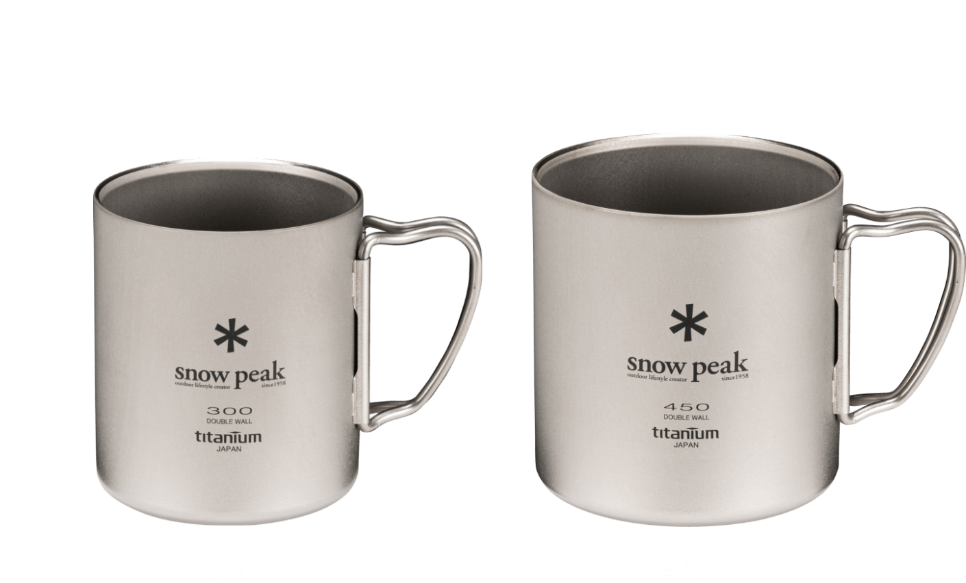スノーピークの定番アイテム「チタンダブルマグ」がリニューアル。従来品ではできなかった300と450のスタッキングが可能になりました。さらに、ハンドルブラケットを改良し、従来品より約1割軽くなっています。