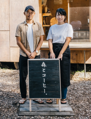 - 福岡県の森の中で、コーヒーの焙煎所 兼 店舗として採用。「自分に帰ろう。森へ行こう。」をコンセプトに、珈琲豆の焙煎・販売、ドリンクのテイクアウト販売を行っています。森の中で焚火を囲み、淹れたての珈琲を楽しむ贅沢な時間が流れます。