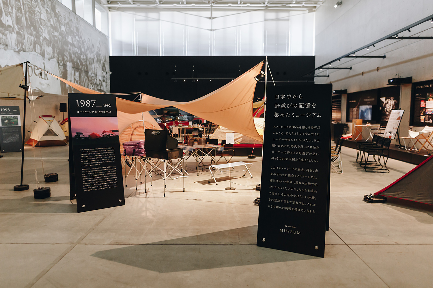 スノーピークのDNAを感じる場所だからこそ、スノーピークをずっと愛してくれているたくさんのユーザーの皆さまと、つくりたかった。その願いに応えて、時代を彩った名品たちがユーザーの皆さまの野遊びの思い出もそのままに日本中から集まりました。ここはスノーピークの過去、現在、未来のすべてに出会えるミュージアム。燕三条という世界に誇れる土地の力を借りて私たちが本当につくりたいもの。それはたんなる道具ではなく、その先のすばらしい体験です。その意志を決して忘れることなく、これからもスノーピークは未知への挑戦を続けていきます。