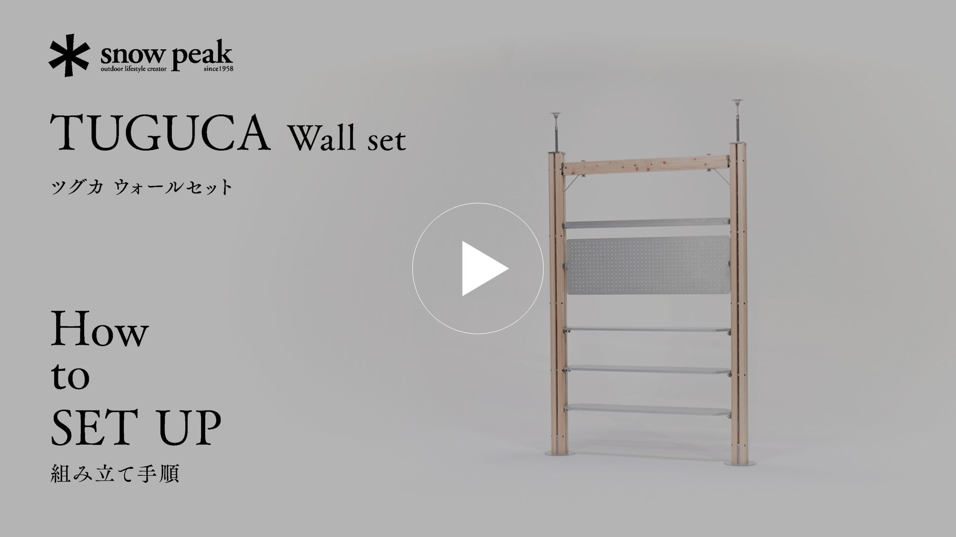 2本の支柱を壁のように立てて設置する「ウォールセット」。机や棚としてはもちろん、機能的な仕切りとしても活用可能です。この場合は付属のテンションロッドを使用し、天井に対し突っ張り棒のようにテンションをかけて固定します。最小の構成でありながら、使い方と工夫で今までにない体験が可能になるセットです。
